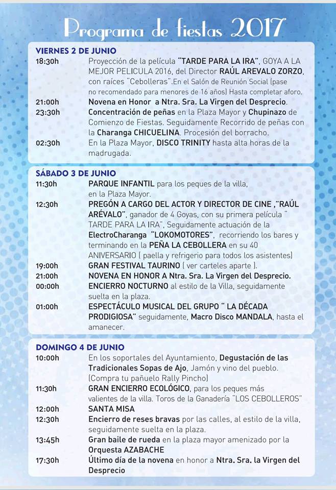 Fiestas tradicionales, con una extensa programación, que durante cinco días habrá diferentes actividades para la celebración de todos los públicos; por tanto, todos los que quiera participar están invitados.